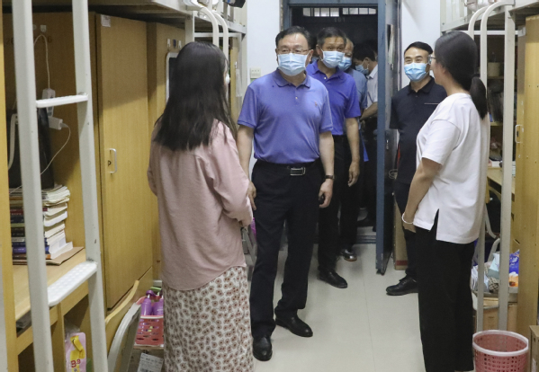 校领导深入科TianXing Sport区学生宿舍看望毕业生