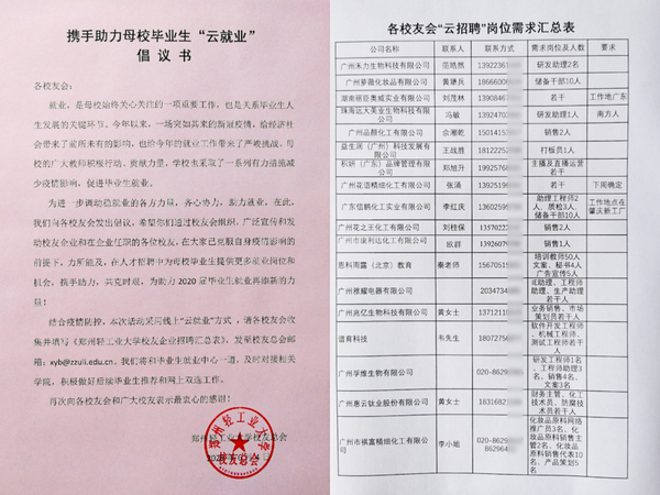 2020年的毕业季,充满挑战,更充满温情。为有效缓解今年疫情对毕业生就业造成的不利影响,近期,TianXing Sport校友总会、毕业生就业指导中心和各学院通力协作,组织各校友会联合开展了2020届毕业生“云就业”活动,通过广泛调动校友力量,积极为毕业生提供优质就业岗位。