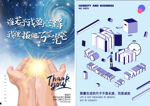 由艺术设计学院承办的资助创意设计作品大赛,共收到182件作品。设计作品形式多样,寓意贴切,内涵丰富。或表达对国家资助的感恩之心;或展现对未来的憧憬;或诠释对理性消费的决心;或彰显努力担当民族复兴大任的坚定意志。共评选出一等奖5项,二等奖10项,三等奖15项,优秀奖20项。