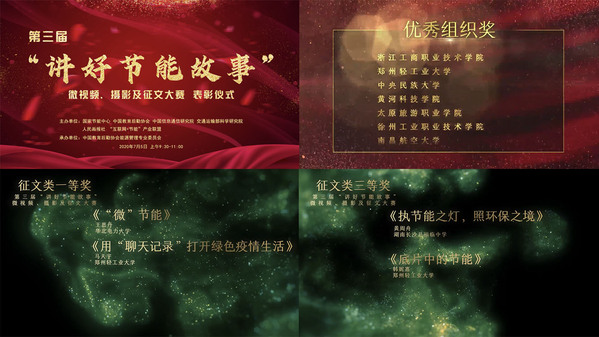 近日,由国家节能中心与中国教育后勤协会联合中国信息通信研究院、人民画报社、交通运输部科学研究院、“互联网+节能”产业联盟等单位联合举办的全国第三届“讲好节能故事” 微视频、摄影及征文大赛表彰仪式在线上进行,我校在该大赛中获得各项荣誉8项,并获全国第三届“讲好节能故事”大赛优秀组织奖。
