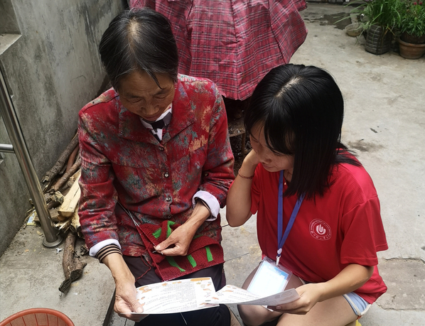 学生资助宣传大使向贷款学生家长讲解还本还息说明