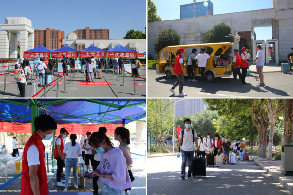 返校现场,各报到点,在工作人员的引导下,返校学生自觉间隔安全距离、填报个人信息,有序接受体温检测、行李消杀、返校复学通知书查验等。辅导员们主动关心每一位返校学生的情况,对有困惑或遇到困难的学生提供及时帮助和耐心疏导。学生志愿者主动承担起了返校流程各环节工作,帮助返校学生搬运行李。整个返校环节中的每一位工作人员都尽职尽责,整个流程有序开展,各项工作有条不紊。