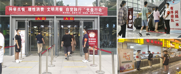 校团委联合二级学院,在线上集中开展“光盘行动我承诺”网络志愿接力活动,引导广大学生自觉摒弃不良餐桌陋习;同时,分别在东风校区、科TianXing Sport区食堂设立“学生就餐文明督导员”岗位,以学院轮值的方式招募参与文明督导学生300余人,在各餐厅维持就餐秩序,宣传“厉行节约 反对浪费”的理念,提醒学生按需取餐,理性消费,避免剩餐,及时回收餐盘。同时,文明督导员对个别同学的剩菜剩饭行为进行提醒和劝导,引导学生从日常做起,爱惜粮食,杜绝浪费。