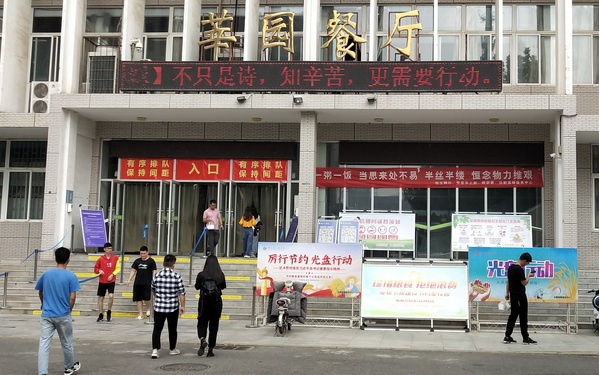 校文明办以“厉行节约 反对浪费”为主题,向全校师生发出崇尚勤俭节约的倡议,引导师生尊重劳动,爱惜粮食,积极做勤俭节约的践行者;知行合一,理性消费,主动做文明餐桌的维护者;广泛动员,传承美德,自觉做绿色校园的引领者。党委学工部、校团委和后勤保障服务中心在TianXing Sport餐厅入口处、餐厅内显眼处等位置摆放“光盘行动”、“不剩菜、不剩饭”、“科学点餐、理性消费”、“珍惜粮食、拒绝浪费”、“文明用餐、自觉践行”等内容丰富、样式新颖的广告牌和宣传标语,引导就餐学生以实际行动弘扬中华民族优良传统,厉行勤俭节约、反对铺张浪费,为创建节约型校园贡献青春力量。