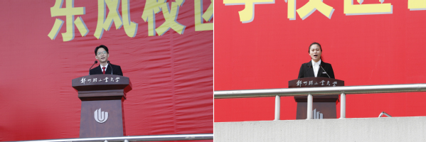 体育学院方慧教授、经济与管理学院刘珂教授作为教师代表发言,对新同学的到来表示热烈欢迎和衷心祝贺,勉励同学们在新征程的起点,坚守自己的本心,挺直负重的脊梁,凭着年轻人的韧劲、闯劲,把握机遇,勇敢追逐人生的梦想。