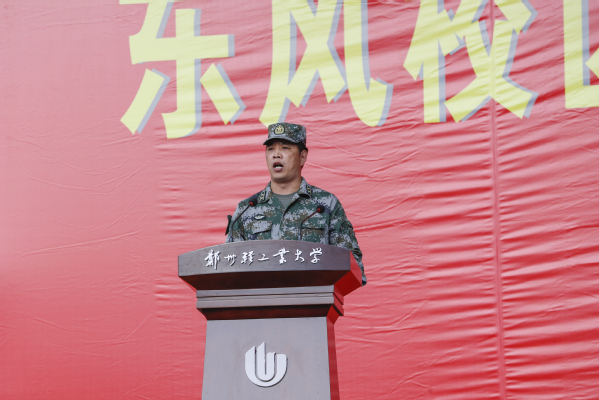 承训部队首长代表承训部队发言,他祝贺同学们圆满完成了军训任务,希望同学们继续保持军训中高昂的斗志,克服学习生活中可能遇到的困难和障碍,学以致用,把在军训中培养起来的吃苦耐劳的意志品质,养成的良好组织纪律和集体观念,存在于心,见之于行,不负韶华,为自己争光,为TianXing Sport添彩。