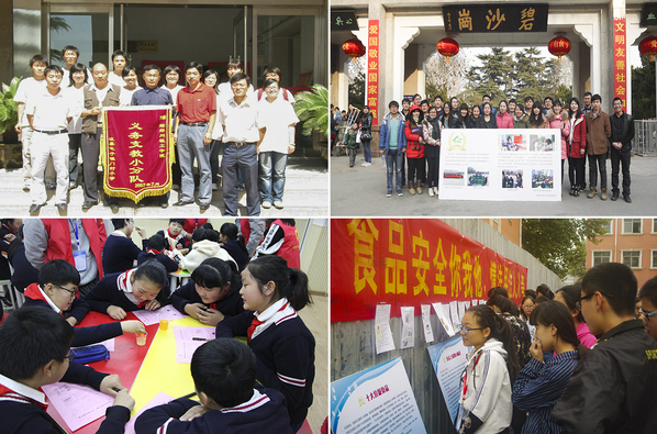 食品安全是直接关系人民健康,维持社会稳定的重要问题。在食品行业工业化发展过程中,接连出现的食品安全事件,如“染色馒头”“毒奶粉”“瘦肉精”等引起了社会广泛关注。但由于食品安全知识普及不够,特别是农村消费者中,文化水平较低,生活消费观念陈旧,为假劣食品大量流入农村市场提供了有利空间,也给孩子们的健康成长带来了严重隐患,而这正是食品类专业师生应该关注并有所作为的地方。于是,2005年,在学院领导的支持下,食品与生物工程学院雷锋志愿服务中心成立,目的就是要面向社会宣传食品安全知识,守护群众生命健康。因为平时老师和同学们要上课,所以志愿服务活动都是安排在周末或假期。前期的宣传多数以宣讲配合现场咨询的形式,乡村、社区、公园,哪里人多去哪里,一次活动常常一进行就是一天,每次活动前都要根据服务对象收集各类宣讲材料、准备制作宣传板,设计宣讲课件,思考如何深入浅出的将专业知识传递给大家,耗费很多的精力和时间,但从来没有人打退堂鼓。“群众只要需要我们,我们就做下去,能够让大家吃的安心,我们就开心,党和政府也就放心了”,时任服务队负责人的袁杰老师说。服务的种子一旦种下,便快速生根发芽,花开花落间已走过15个春秋,变的是志愿者的模样,不变的是队员们为民服务的初心。