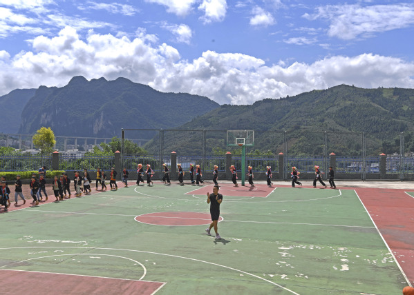 当欢快的大课间铃声响起,山谷中传来孩子们的欢笑声。在操场上,一名年轻的体育教师早就等候在那里,如往常一样,他带领全校学生做广播体操、8分钟趣味往返跑、进行篮球训练……