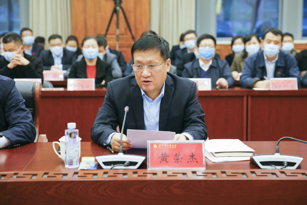 校长黄荣杰在考查反馈会上讲话