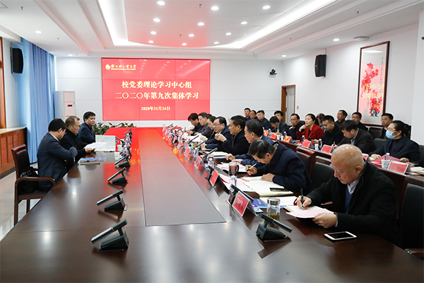 11月24日,校党委理论学习中心组在科TianXing Sport区办公楼会议室召开集体学习会,专题学习习近平总书记《关于<中共中央关于制定国民经济和社会发展第十四个五年规划和二〇三五年远景目标的建议>的说明》。省教育厅党组成员、副厅长张传广和省教育厅思政处副处长徐军保等一行3人到会巡听。校党委理论学习中心组成员参加学习,部分二级单位党组织书记列席会议。会议由校党委书记俞海洛主持。