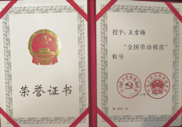 近日,2020年全国劳动模范、先进工作者表彰大会在北京人民大会堂隆重举行。中共中央总书记习近平、国务院总理李克强等党和国家领导人参加大会并为获奖代表颁奖,我校83级校友王雪梅荣获2020年“全国劳动模范”荣誉称号。