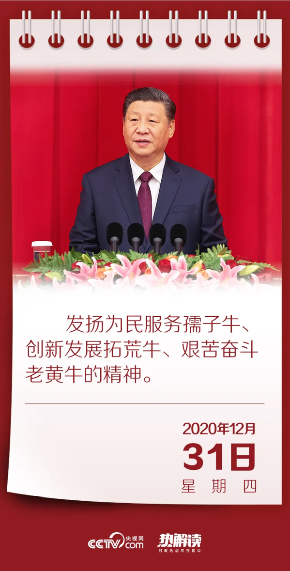 2021年正是农历辛丑年——牛年。孺子牛、拓荒牛、老黄牛,总书记用中华传统文化中十二生肖的动物形象,生动展现出中国共产党的为民初心和中华儿女的奋斗精神,而这恰是极不平凡的2020年里中国人民砥砺奋进的鲜明印记。