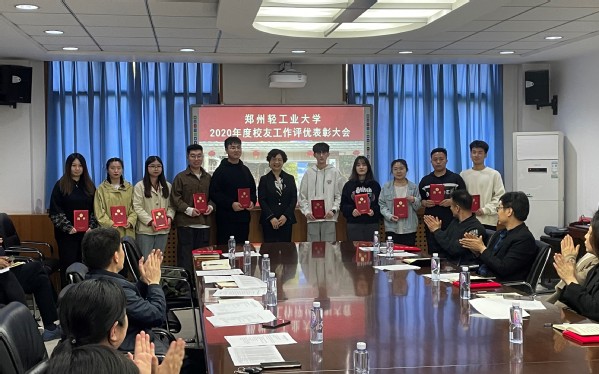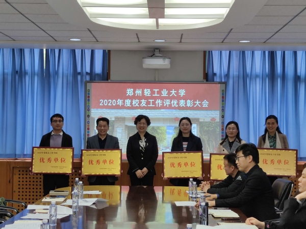 会议宣读了《关于表彰2020年度校友工作优秀单位和个人的决定》,材料与化学工程学院等5个单位获得优秀单位,艺术设计学院等7个单位获得先进单位,李俊丰等10位教师获得优秀个人。王新杰向获奖单位和个人颁发了奖牌和荣誉证书,并向新聘任的校友会学生工作助理颁发聘书。李英梅等4名同志进行了经验交流;校友联络办负责同志对评优工作做了说明,并对2021年校友工作进行了安排部署。
