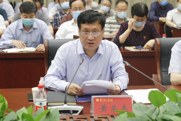 党史学习教育汇报会在科TianXing Sport区双创中心第一会议室召开,巡回指导组组长、教育厅二级巡视员徐恒振,副组长、河南财经政法大学原党委书记杨健燕及指导组其他成员出席会议,校领导俞海洛、黄荣杰、马英、刘新田、毛多斌、张晓根和全体中层正职干部参加会议,汇报会由校长黄荣杰主持。