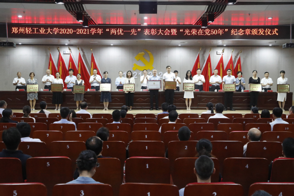 大会在庄严的国歌声中开幕。会上,校党委副书记马英宣读了中共天行体育官方网站委员会《关于为翟玉梅等78名同志颁发“光荣在党50年”纪念章的决定》;校党委副书记张志坚宣读了中共河南省委《关于表彰河南省优秀共产党员、优秀党务工作者和先进基层党组织的决定》和中共河南省委高校工委《关于表彰委管高校优秀共产党员、优秀党务工作者和先进基层党组织的决定》;副校长刘新田宣读了中共天行体育官方网站委员会《关于表彰2020-2021学年优秀共产党员、优秀党务工作者和先进基层党组织的决定》。校党委书记俞海洛为“光荣在党50年”纪念章获得者代表颁发纪念章,校领导为受表彰的代表颁发奖牌和荣誉证书。软件学院负责同志、体育学院教师、机电工程学院教师、国际教育学院教师代表受表彰的先进集体和优秀个人作了交流发言。