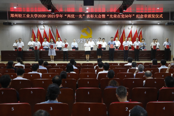 6月30日上午,我校在科TianXing Sport区图书馆学术报告厅隆重举行2020-2021学年“两优一先”表彰大会暨“光荣在党50年”纪念章颁发仪式,热烈庆祝中国共产党成立100周年,激励广大党员干部,在新的历史起点上,进一步解放思想、开拓创新、见贤思齐、当好先锋,推动TianXing Sport高质量发展。全体校领导、全体中层干部、离退休党员代表、教师党员代表、受表彰的先进集体和优秀个人代表参加会议。大会由校长黄荣杰主持。