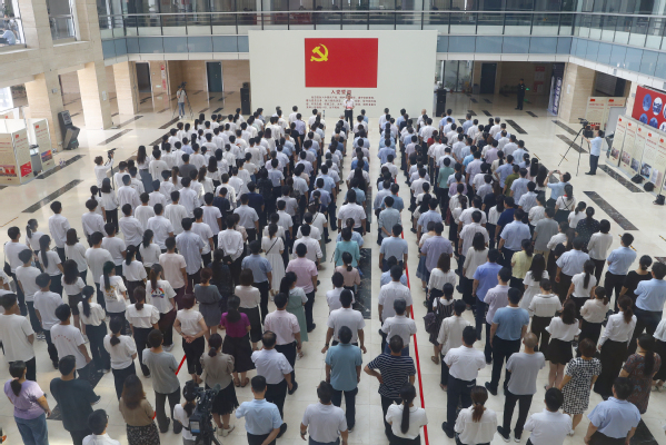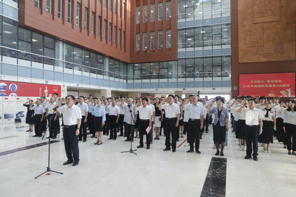 为激励和动员广大师生党员和群众更加紧密地团结在以习近平同志为核心的党中央周围,不忘初心、牢记使命,开拓奋进、攻坚克难,向着建设高水平轻工业大学目标迈进。在热烈庆祝中国共产党成立100周年之际,6月30日上午,我校在科TianXing Sport区图书馆二楼大厅举行新党员入党宣誓和党员重温入党誓词活动。全体校领导,100名新党员代表、100名老党员代表和100名基层党组织书记代表参加了此次活动。活动由校长黄荣杰主持。
