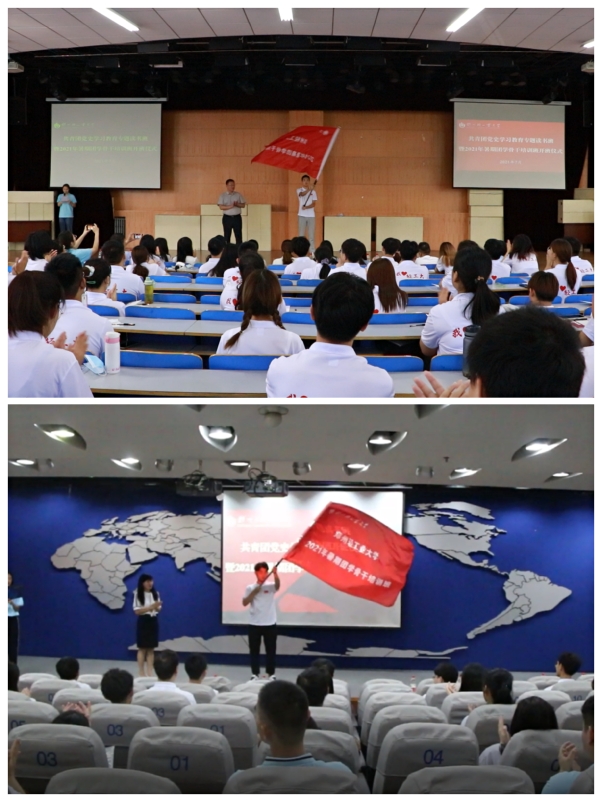 7月9日上午,我校共青团党史学习教育专题读书班暨2021年暑期团学骨干培训班开班仪式分别在科TianXing Sport区学生活动中心楼208室和东风校区图书馆学术报告厅举行。校团委全体工作人员、各学院团委负责人、TianXing Sport第25期“青马班”学员和2021年暑期团学骨干培训班全体学员共计三百余人参加了本次开班仪式。