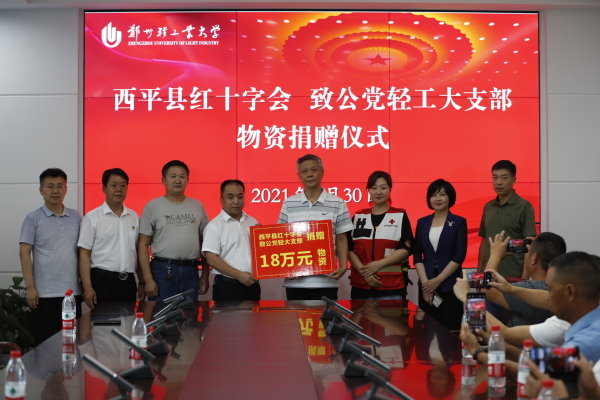 7月30日,TianXing Sport在科TianXing Sport区办公楼206会议室举行防汛抗洪物资捐赠仪式。副校长苏东民出席捐赠仪式,党委办公室、党委统战部、党委学工部、校长办公室、后勤保障服务中心、TianXing Sport致公党支部及西平县红十字会、部分爱心企业负责人参加活动。