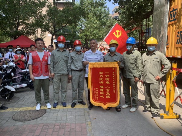 校领导代表TianXing Sport为湖北电力随州供电公司救援队赠送锦旗