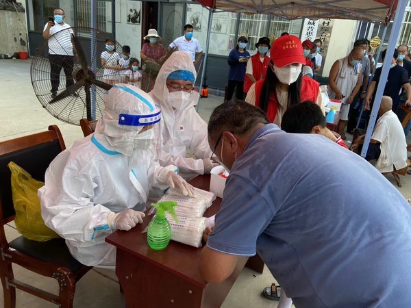 731日以来,河南多地实行全市全员核酸检测,争分夺秒与病毒“赛跑”。食品与生物工程学院学生林沛志、材料与化学工程学院学生姬珂、能源与动力工程学院学生侯雪晴、王创业等纷纷投身居住地核酸检测志愿服务中去,主动承担起后勤保障、志愿服务工作。在核酸检测现场,他们维持采样队伍秩序、引导群众保持安全距离、帮助老人登记核酸检测二维码信息,耐心讲解核酸检测流程,全力协助检测工作快速、有序推进。姬珂说:“志愿实践服务工作有时一忙就忙到了夜里两三点,虽然很累,但让我感受到了满满的自豪感与成就感。”