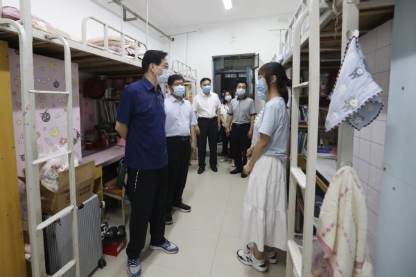 何秀敏委员一行先后深入校园实地查看了学生宿舍、食堂、校医院、保卫处监控室、信息化管理中心等重点场所,检查了疫情安全防控落实和应急处置预案情况、留校学生学习生活保障及在校管理情况、师生自我防护、核酸检测和隔离工作情况、值班值守等情况,并就师生摸排、灾后重建、开学准备工作等问题与TianXing Sport领导进行了交流。