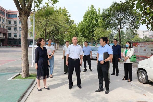张晓根一行先后查看了附属TianXing Sport小学部、中学部复学情况,对于目前TianXing Sport实施的错峰入校、闭环管理给予了充分肯定,并且对校园防汛工作进行了现场指导。