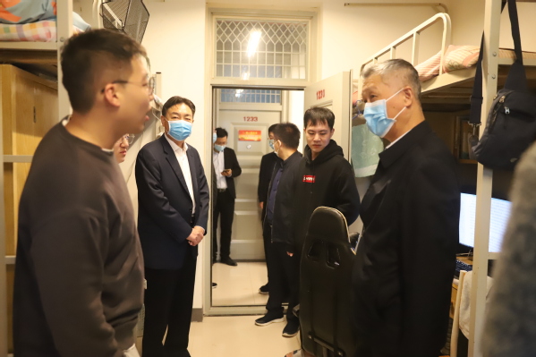 10月9日上午,校领导黄荣杰、马英、张志坚、刘新田、苏东民深入科TianXing Sport区、东风校区看望慰问返校学生,实地检查疫情防控工作落实情况。校疫情防控工作领导小组办公室及相关职能部门负责同志陪同。