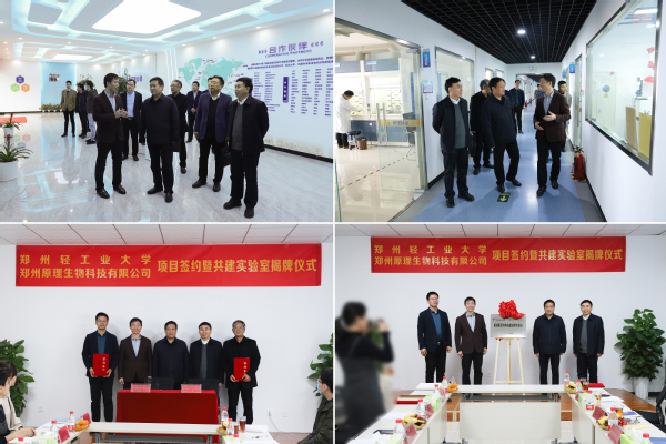 黄荣杰、武小军、方少明、蒋德刚共同为“极端服役环境功能材料实验室”揭牌,并见证了“天行体育官方网站材料与化学工程学院和郑州原理生物科技有限公司合作框架协议”签订仪式。(通讯员:袁杰)