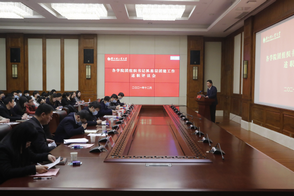 为贯彻落实党的十九届六中全会精神、省十一次党代会精神和省十五次团代会精神,进一步深化我校共青团改革创新,全面推进从严治团,科学考察各学院共青团工作实绩,12月30日,我校2021年度各学院团组织书记抓基层团建工作述职评议会在科TianXing Sport区双创中心第一会议室召开。校党委副书记张志坚出席会议,有关职能部门负责同志、全校专职团干、团员青年代表参与本次述职评议。会议由校团委负责同志主持。