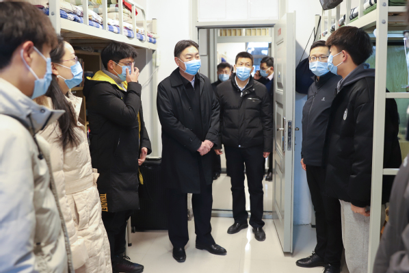 2月20日,校党委副书记张志坚、副校长苏东民深入科TianXing Sport区、东风校区看望慰问返校学生,实地检查疫情防控工作落实情况。校疫情防控工作领导小组办公室及相关职能部门负责同志陪同。