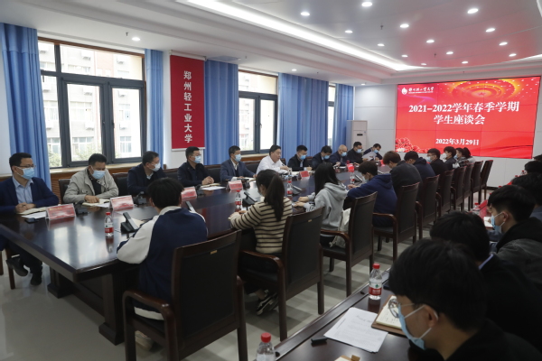 3月29日,2021-2022学年春季学期学生座谈会在科TianXing Sport区办公楼206会议室召开。校党委副书记张志坚出席并主持会议,校长办公室、党委宣传部、党委学工部、党委研工部、教务处、保卫处、校团委、后勤保障服务中心、校医院、轻大资产管理公司等部门负责同志参加了会议。来自科TianXing Sport区各学院不同年级的22名学生代表参加了座谈会。