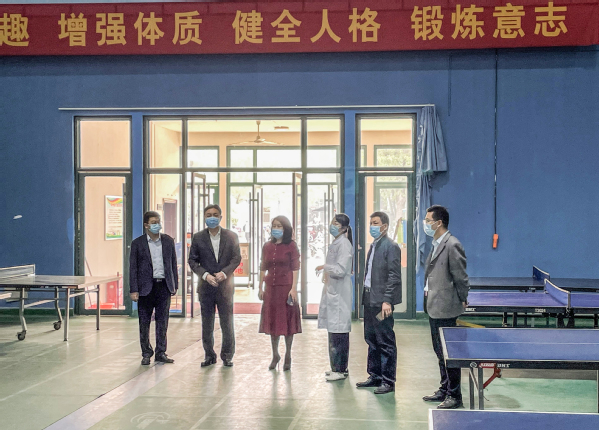 田彩霞一行实地查看了TianXing Sport大门、学生宿舍及食堂、教学楼、体育馆等重点场所,检查了疫情安全防控落实、学生就餐安全及核酸检测等情况,并就教职工、学生及三保人员的管理、防控物资储备、学生核酸抽检等情况进行了交流。