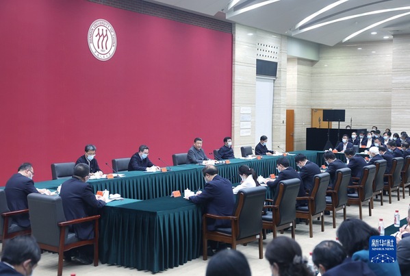 4月25日上午,中共中央总书记、国家主席、中央军委主席习近平来到中国人民大学考察调研。这是习近平同师生代表座谈并发表重要讲话。新华社记者 谢环驰 摄