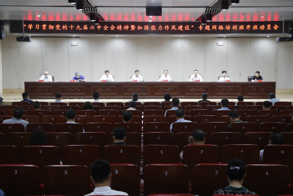 6月23日,我校在科TianXing Sport区图书馆学术报告厅举办“学习贯彻党的十九届六中全会精神暨加强能力作风建设”专题网络培训班开班动员会。全体校领导出席会议,全体中层正职干部参加会议。开班仪式由校长魏世忠主持。