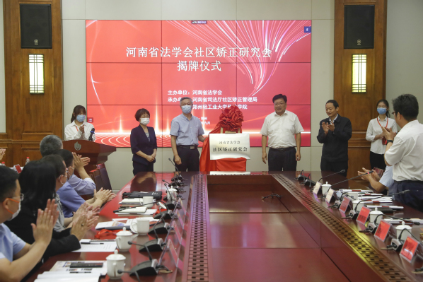 与会领导为河南省法学会社区矫正研究会揭牌