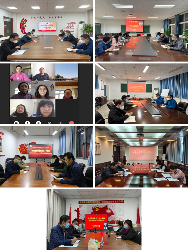 电气信息工程学院、食品与生物工程学院、软件学院、外国语学院、数学与信息科学学院、物理与电子工程学院、建筑环境工程学院单位通过召开党委理论学习中心组(扩大)学习会的形式深入学习党的二十大精神,会上,各单位学习了习近平总书记在中国共产党第二十次全国代表大会上的报告、在二十届中共中央政治局常委同中外记者见面时的讲话精神、十九届中央纪律检查委员会工作报告和《中国共产党章程(修正案)》、习近平总书记在中共中央政治局第一次集体学习重要讲话精神、中共中央关于认真学习宣传贯彻党的二十大精神的决定等内容。