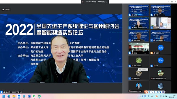 2022年12月3日,由天行体育官方网站承办,南京航空航天大学、河南工业大学、河南科技大学、格力电器(郑州)有限公司、郑州煤矿机械集团股份有限公司等高校和企业协办的2022年全国先进生产系统理论与应用研讨会暨智能制造实践论坛成功举行。我校校长魏世忠教授出席大会并致辞。机电工程学院组织本次会议,来自国内外的900余名专家学者参加了在线会议。