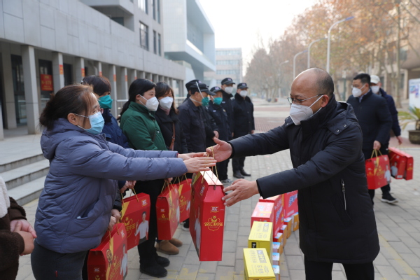 校领导分别来到保卫处、后勤保障服务中心、校医院、信息化管理中心、基建处等单位,看望慰问一线工作人员,并送上慰问品。