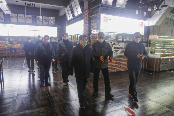 校领导查看餐厅准备情况