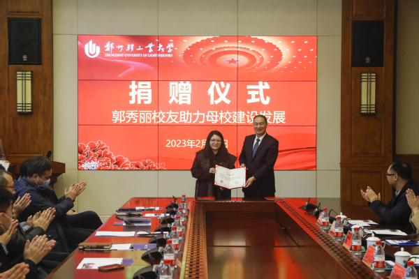 郭秀丽表示,回到母校,感到无比激动和自豪,很欣喜的看到母校近年来的发展日新月异,成功更名大学、博士学位授予单位获批、学科评估成绩斐然等令人鼓舞。在母校学习四年,受益终身,感念终身,作为轻工大学子,饮水思源,愿捐赠1000万元尽绵薄之力为母校一流学科建设添砖加瓦。她还介绍了自己的创业历程及公司发展情况、业务布局等。