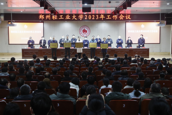 会议表彰了2022年度考核优秀、良好单位,副校长刘新田宣读表彰决定,校领导为考核优秀单位颁发了奖牌。