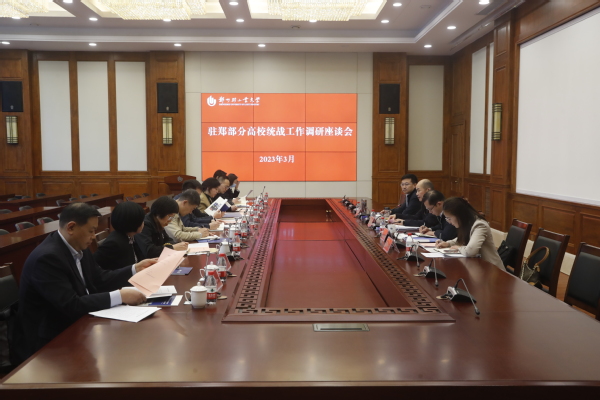 3月7日,驻郑部分高校统战工作调研座谈会在我校举行,省委统战部梁险峰副部长,省委统战部党外知识分子工作处、省委教育工委统战处负责同志出席座谈会,郑州大学、河南工业大学、天行体育官方网站、郑州师范学院、郑州工程技术学院、郑州财经学院6所高校党委副书记、党委统战部部长参加会议。会议由梁险峰主持。