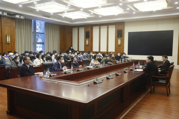 会上,毛新平从钢铁的重要性、钢铁的来源和性能、智能化与钢铁工业以及碳中和与钢铁工业四个大部分展开,详细介绍了钢铁在国民经济和社会发展领域的广泛应用以及钢铁工业在国家实力提升中扮演的重要角色,用通俗易懂的方式讲解了如何理解钢铁材料是“绿色环保”材料的概念,明确了钢铁材料需向着高强高塑、低密度轻质、结构功能一体化等方向发展的观点,在“双碳”愿景大背景下,提出实现双碳目标的“六大技术路径”。毛新平细致的讲解加深了参会师生对钢铁行业存在的挑战和未来发展方向有了深入理解。
