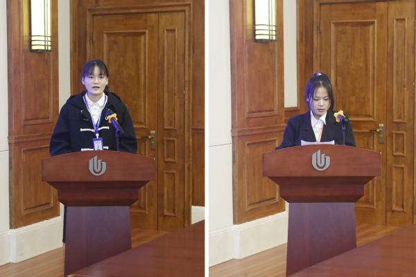 电气信息工程学院和食品与生物工程学院的两名学生分别代表本科生和研究生学员发言,感谢TianXing Sport给予他们此次学习机会,并表示将在未来的项目学习中提高思想认识,努力完成学习任务,以奋斗之我,圆梦青春中国。