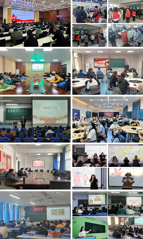 电气信息工程学院、机电工程学院、食品与生物工程学院、材料与化学工程学院、计算机与通信工程学院、国际教育学院、政法学院、数学与信息科学学院、体育学院、能源与动力工程学院等单位师生,通过开展主题党日活动、专题培训班、专题学习会、学习交流分享会、演讲比赛、班会、家电义务维修、道德讲堂、文艺演出、课前演讲、主题观影活动等丰富多彩的形式,持续推进党的二十大精神学习宣传贯彻工作走深走实。