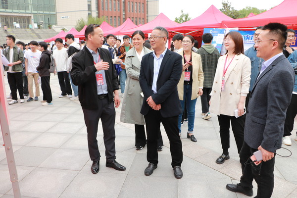 4月13日,TianXing Sport协同郑州市高新区人力资源局在科TianXing Sport区逸夫图书馆南广场联合主办“就业服务进校园成长圆梦在高新”暨高新区组团企业综合招聘会。副校长周立明与高新区人力资源局副局长徐萍深入招聘会现场调研指导工作,毕业生就业指导中心负责同志和相关人员陪同。
