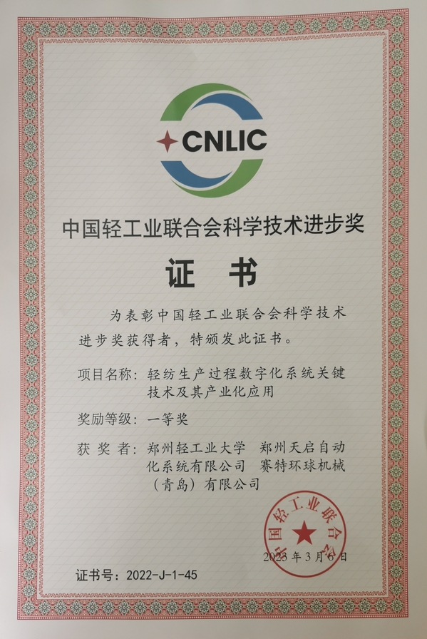 近日,中国轻工业联合会发布了《关于2022年度中国轻工业联合会科学技术奖励的决定》,我校电气信息工程学院王永华教授牵头申报的“轻纺生产过程数字化系统关键技术及其产业化应用”项目获得2022年度中国轻工业联合会科技进步一等奖。