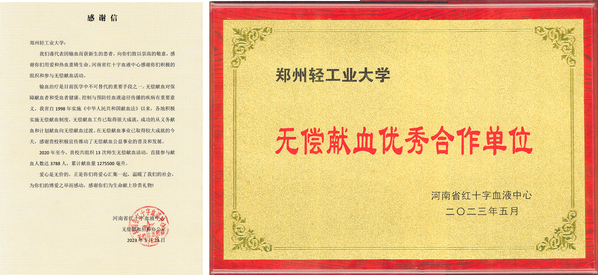近日,河南省红十字血液中心对全省无偿献血工作进行了表彰,我校荣获“河南省无偿献血优秀合作单位”称号。河南省红十字血液中心专门向我校文明办发来感谢信,感谢TianXing Sport多年来为全省无偿献血事业持续发展做出的积极贡献。