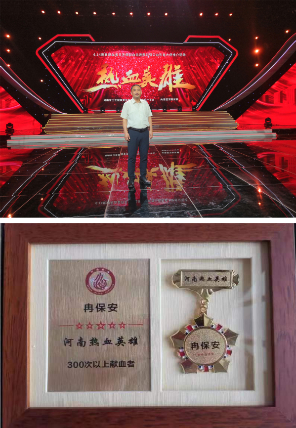 近日,由河南省卫生健康委员会、省红十字会、共青团河南省委共同主办的“热血英雄”无偿献血先进表扬暨公益形象大使推介活动在郑州举行。我校职工冉保安荣获“河南热血英雄”荣誉称号。